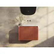 6. TOOLKISS Wall Hung Bathroom Vanity 800mm Potter’s Clay – Elegant Fluted Design with Thin Solid Surface Basin, Water-Resistant MDF, Soft-Close Drawers, Includes Pop-Up Waste