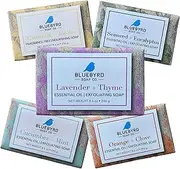 24. BLUEBYRD 5-Pack Essential Oil Exfoliating Soap Bars Boxed Variety Set, Scented Natural Bar Soap Gift Set, Cucumber Mint/Fragrance Free Goat Milk Jojoba/Lavender Thyme/Orange Clove/Seaweed Eucalyptus
