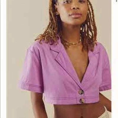 NWT Free People Honey Dew Crop Top Button Down Linen Blend Purple Size S ($78)